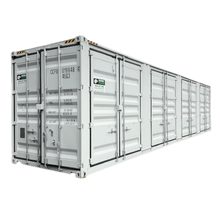 Extra-high 40FT container with doors at both ends, ideal for high-volume storage and easy drive-through loading access.